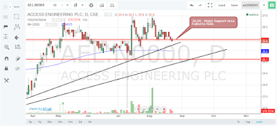 ASI - RSI was below 20 points, but many other indicators turning their curves, signaled a tend reversal very soon (refer my post dated 23.08.2017). So the ASI survived to hold above an important support area of 6367 which is the 50% Fibonacci retracement line plotted from the present low to the present high. Whilst that is a good development based on the Daily chart, suggesting a nice environment in the short term, the weekly chart is still in a consolidation and a recovery. Nevertheless the market now has room for a busy period in the days ahead.